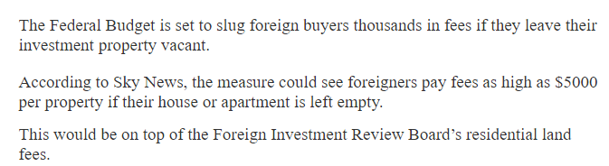 根据The Australian的报道, 澳洲联邦政府的最新预算案或出台一项政策--通过征收外国买家的“空房罚款”来限制澳洲的空房率 !!