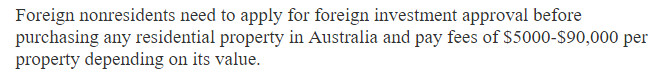 本来非澳洲居民买房,就需要缴纳一笔金额不菲的“外国投资审批费”,