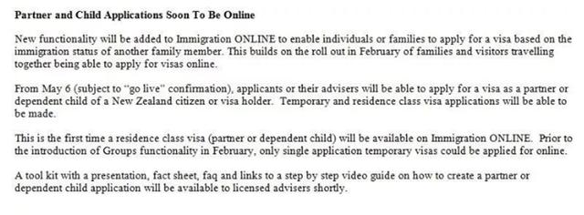 好消息!近日,新西兰移民局宣布,配偶类签证和未成年子女类签证即将开通网上申请,5月6日起正式执行。