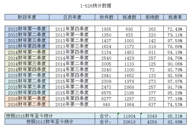 昨天,USCIS公布了最新一个季度,2016财年第二季度(2016年1月1日至6月31日)EB-5案件递件和审批的最新数据,递案数和通过率双双走低