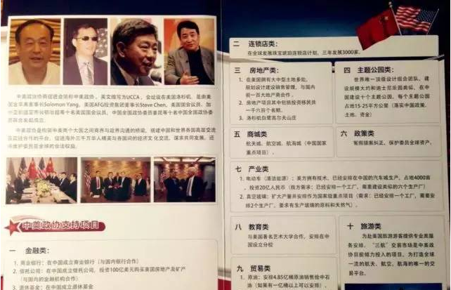 在一份中美政治协商促进会的宣传品上,印刷了洛杉矶县亚凯迪亚市前市长鄂志超、相声名家姜昆和陈立等人的照片,尽管鄂志超通过当地媒体宣称自己被利用,但对华人的名人效应已发生。