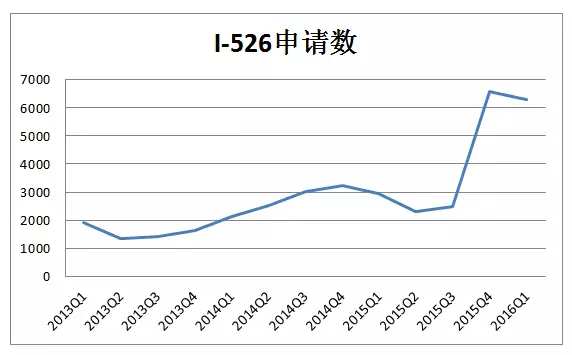 继9.30的最高峰,2015年6月1日至9月30日这个,抢9.30的6,575个I-526申请高峰之后,12.11继续再创小高峰,6,277件I-526申请!