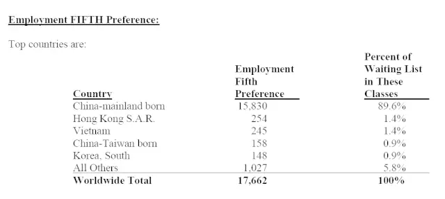 2. 只包括了DOS收到的申请,并不包括USCIS还在处理的申请(EB-5类别的I-526申请);