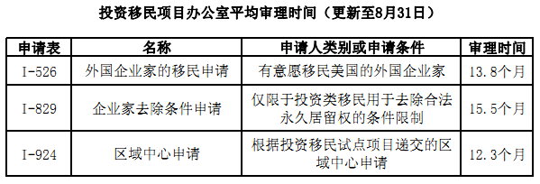 美国移民局(USCIS)刚在其官方网站上发布了最新的9月份EB-5平均审理时间(更新至9月30日)。