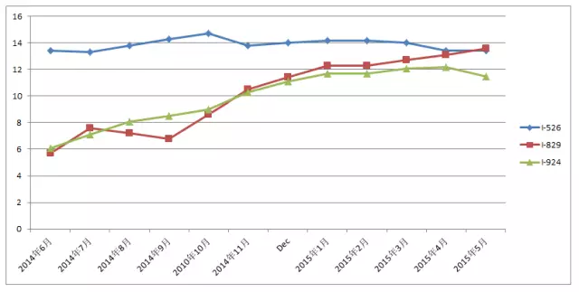 I-829,继续变缓:从4月份的13.1个月,退缓至5月份的13.6个月