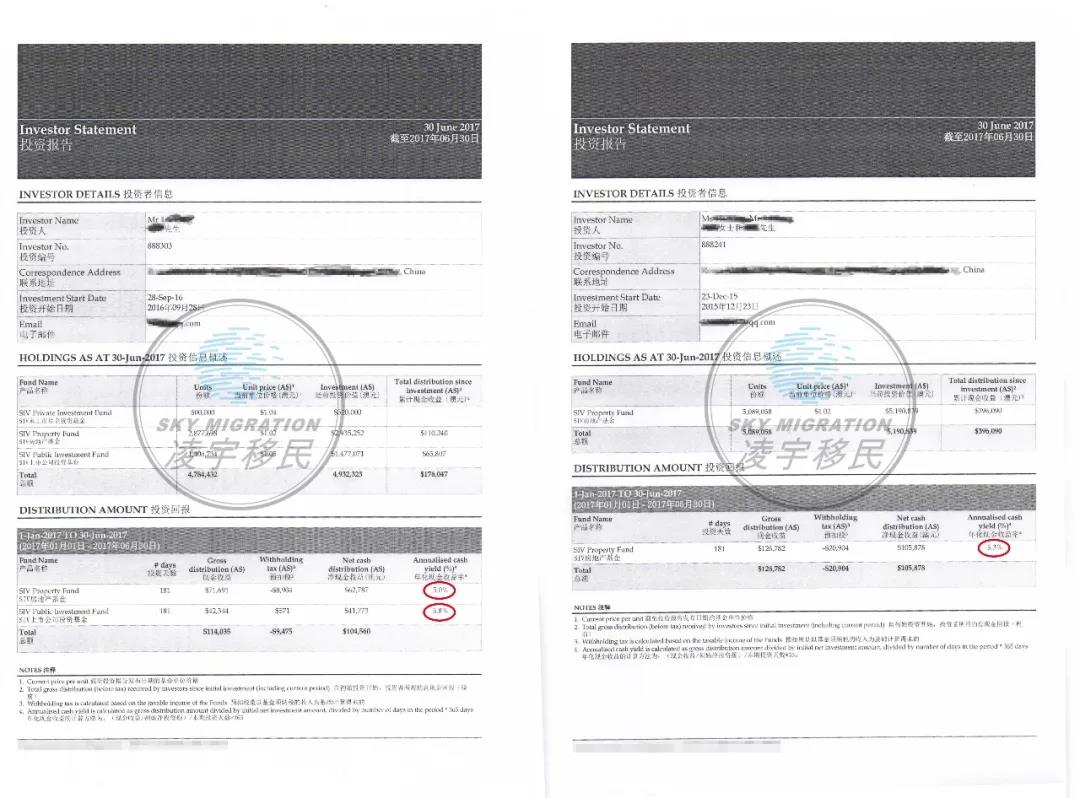 已经投资500万澳元项目的客户,目前他们的投资回报情况到底如何呢?我们节选了凌宇移民经过严格评估标准审核过的两个主要金融管理机构的8份投资者报告来看一下: