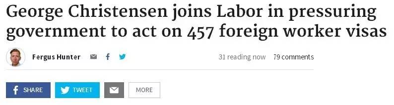 此前媒体中曾有消息称,收紧457签证政策的议案是现任反对党(工党)领袖比尔·肖顿提出的。
