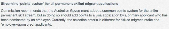 澳洲政府受建议,将对所有技术移民采用积分制。如果主要申请人有雇主的担保,可以获得加分。当前,技术移民和雇主担保移民申请的选择标准有所不同。
