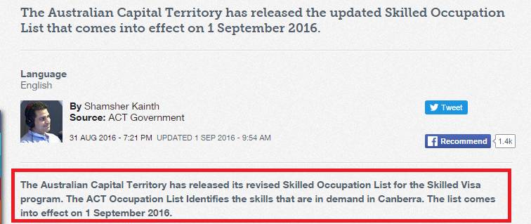 符合资格的申请者,可以申请澳洲技术移民190签证。而在2016年9月1日前提交的澳洲首都领地提名申请,将根据2016年3月发布的职业清单进行评估。