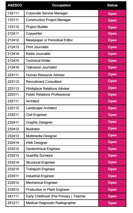 一些热门职业仍然保留在澳洲首都领地技术移民职业列表上,这其中包括:土木工程师、全科医生、零售药剂师、早教教师、建筑师、医学影像专业人员、注册护士、顾问、机修工、心理学家和房地产专业人士等。