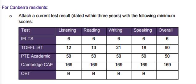 对在海外申请澳洲首都领地担保移民的申请人来说,ACT州担保清单中Open状态的职业要求英语雅思平均分为7分,口语不低于7分;