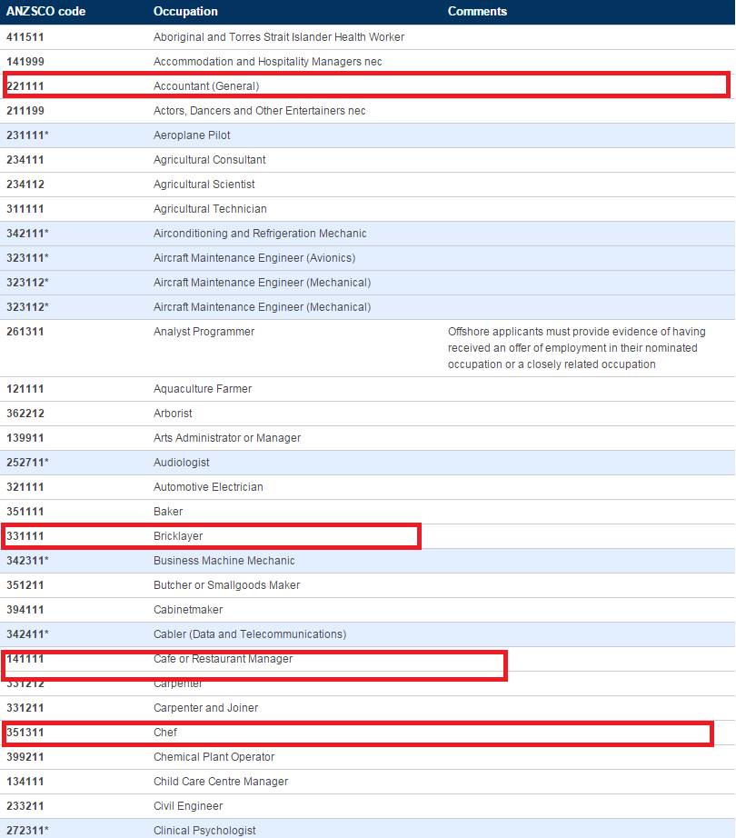 需要70分移民分才能够有机会获得邀请的会计历历在目!而且砌砖工、咖啡店和餐厅经理、厨师以及中餐厨师也能够向北领地政府递交移民申请!