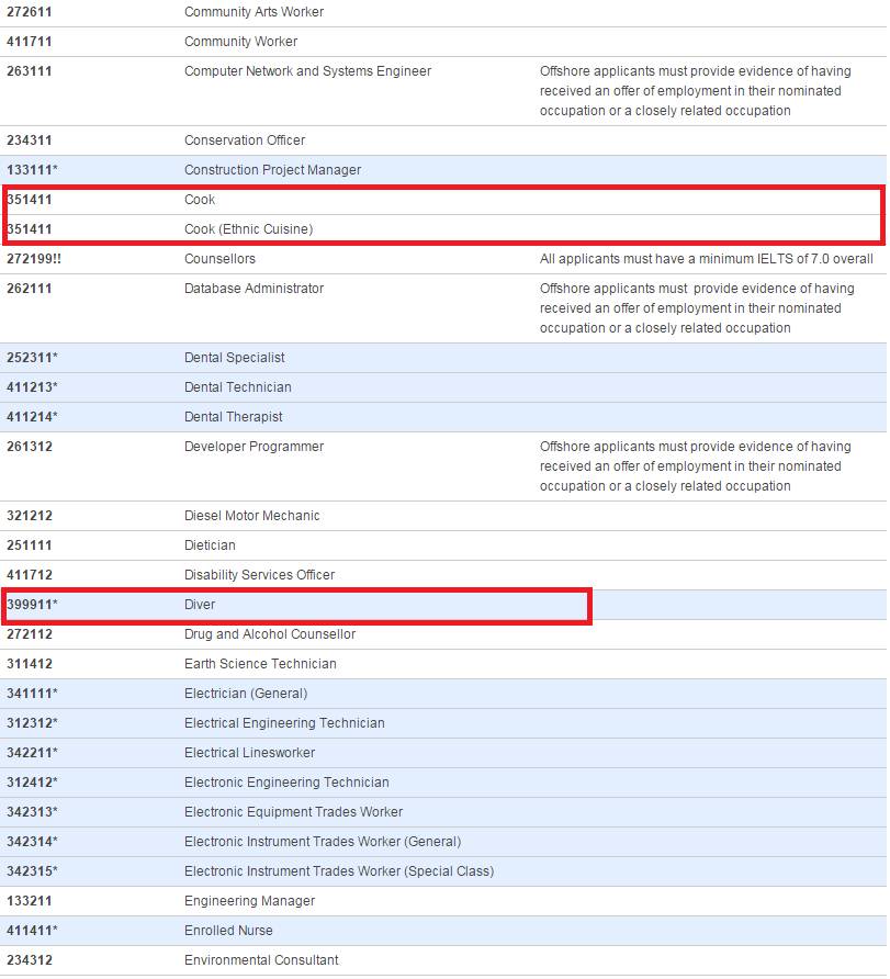 南澳州政府也在近日公布了最新的州政府移民担保清单!在清单中的一些职业的英文和工作经验要求进行了一些更改!