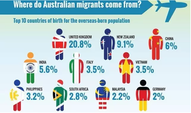 《澳大利亚人报》称去年一年,就有27,874名中国国民通过技术移民与家庭团聚途径来到澳洲,仅次于印度(34,874)!