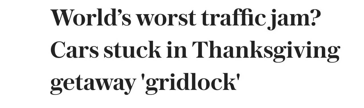405号公路原本就是美国最繁忙、最拥堵的公路之一,感恩节出行更是让这条公路不堪重负。