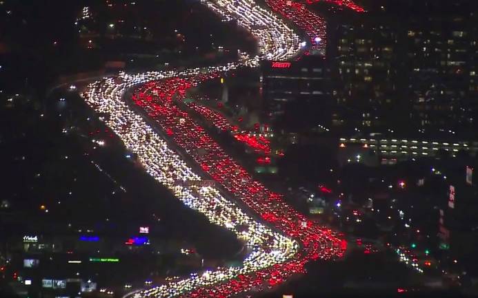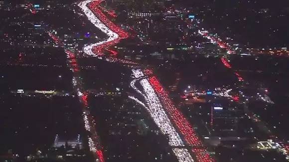 洛杉矶的405高速公路简直成了超级停车场!美国媒体甚至惊呼,天啊撸,感恩节造成了世界最糟糕的堵车!