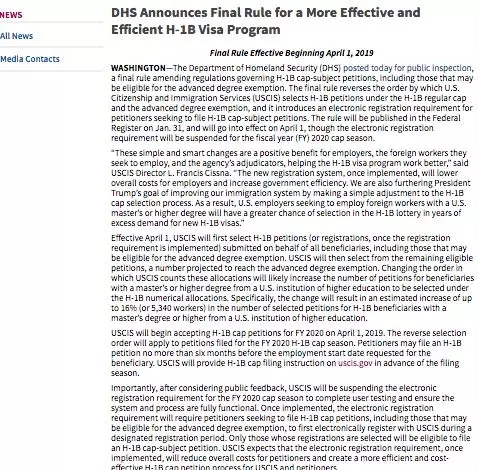 根据之前的USCIS出台的《H1B改革提案》中,新增网上注册是最大的亮点,但这次最终版中,并没有看到。