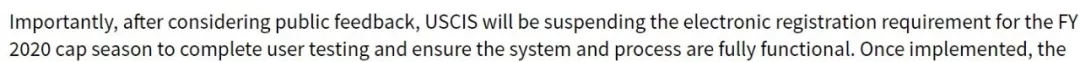 所以今年2019年4月这一轮H1B抽签将暂不执行,预计2020年的H1B申请开始执行电子注册。
