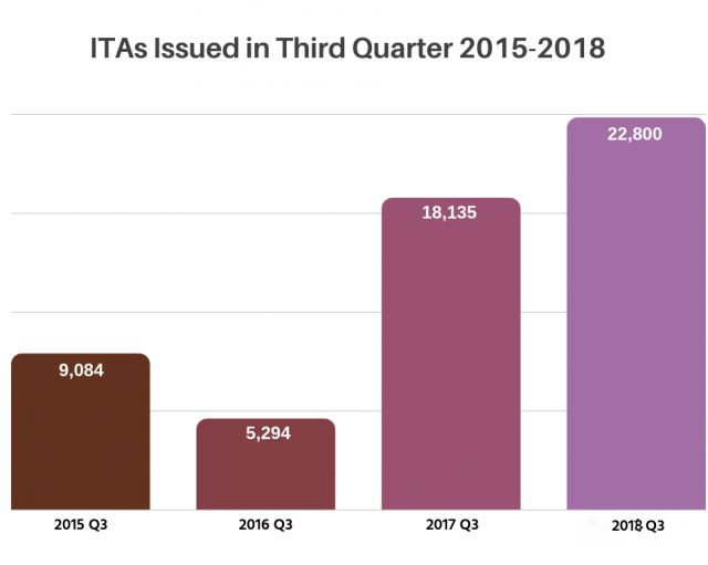 日前,从加拿大公布的官方数据中我们得知,在刚刚过去的第三个季度,加拿大“快速通道”(Express Entry,简称EE)经济类移民甄选系统一共发出了22,800份移民申请邀约(Invitation to Apply,简称ITA),创下启动以来同期历史新高!而获邀的最低分也降至440分。 邀约创新高 加拿大或将大降移民门槛? 邀约数